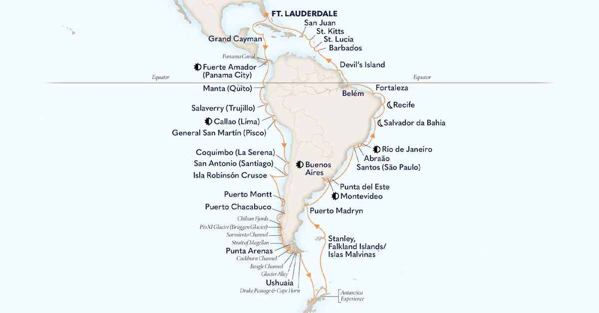 Duration:  70 Nights - From Fort Lauderdale, Florida to Fort Lauderdale, Florida