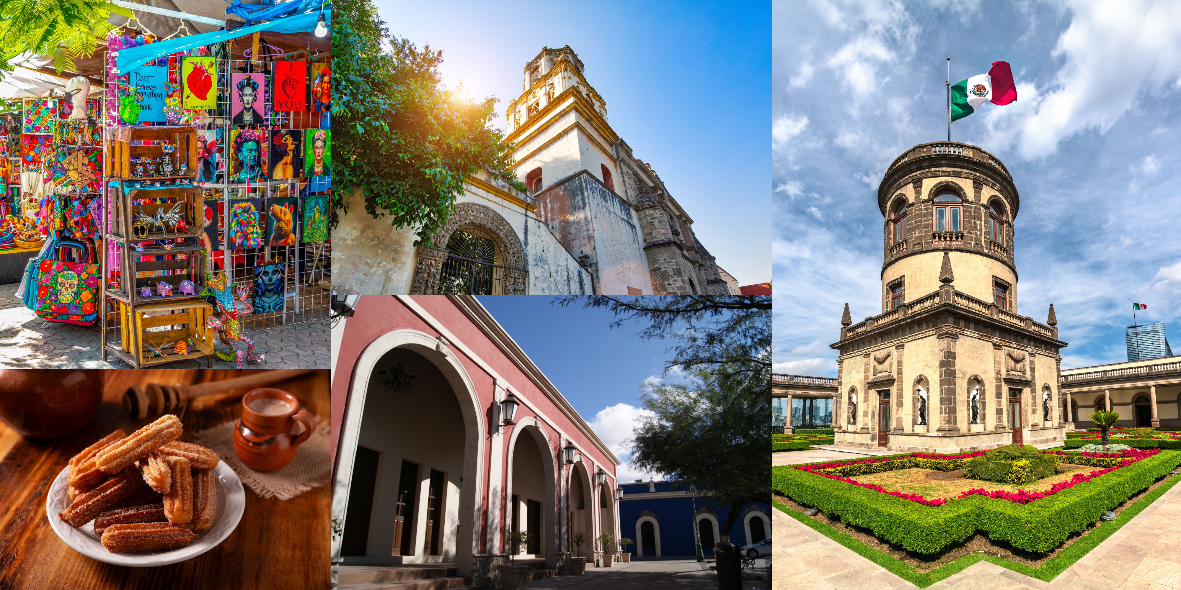 Take in the panoramic views from Chapultepec Park and Castle. Then try traditional dishes like quesadillas, blue corn tlacoyos or pozole (stew) at the Coyoacan Market.