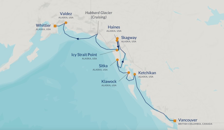 Departure / Arrival: Vancouver, British Columbia, Canada -> Whittier, Alaska, United States